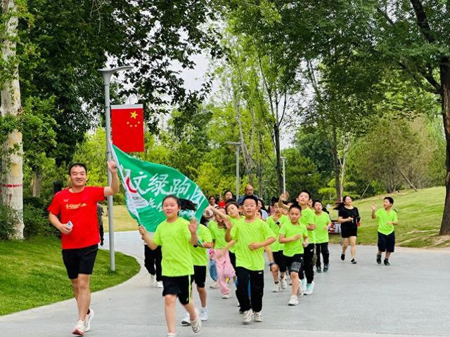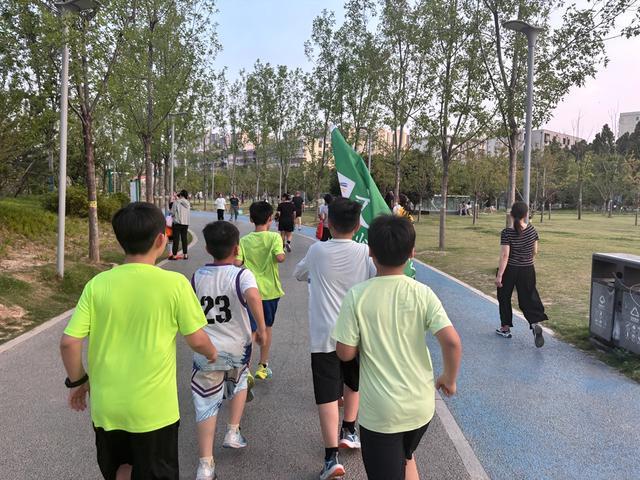 “加油,跟上。”一群身着荧光绿运动服的同学们在老师的鼓励下,奔跑在郑州市青少年公园的跑道上。组织者方坤是金水区文化绿城小学的一名班主任,他热爱运动,经常参加马拉松比赛。