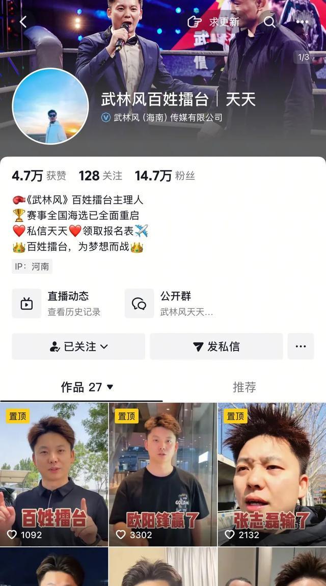 3、关注抖音号“武林风百姓擂台 | 天天”,私信即可报名。