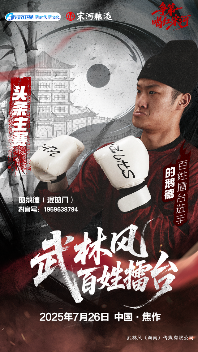 江湖不远,梦想可及,武林风百姓擂台,始终为每个有武侠梦的平凡人敞开大门。这里没有门槛高低,只有拳脚真章;没有身份之别,只论功夫深浅,踏上擂台的刹那,每个人都将成为自己江湖里的英雄。2025年7月26日,河南焦作的热土已备好掌声与呐喊,让我们共同奔赴这场热血之约。