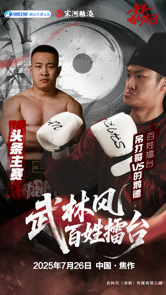 2025年7月26日,由中国名酒宋河粮液冠名的全新 “武林风百姓擂台” 第二期将在河南焦作热血开赛。本期赛事中,陈氏太极拳第12代传人“魔鬼教官” 孙武将亲率麾下太极功夫战队向朱彬战队发起攻擂,剑指“宋河英雄” 冠军荣誉。下面,让我们一同聚焦第二期百姓擂台的五场对阵。