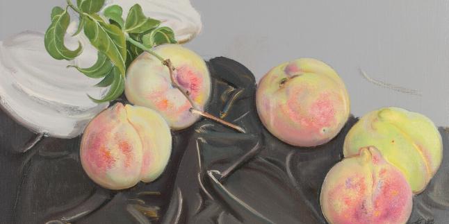 当淋巴癌将忻东旺困于病榻时,朋友送来一束郁金香。他催促妻子取来画具。在《生命的托举》中,萎垂的花朵被茂盛的叶片承托着,仿佛家人围护着病中的他。这幅遗作里没有死亡的阴郁,只有“生的希冀和爱的美好”。此时的白菜、石榴、椰子等静物系列,早已超越物象本身,成为生命本质的隐喻——那些斑驳的叶脉与开裂的果皮中,跃动着不屈的灵魂。