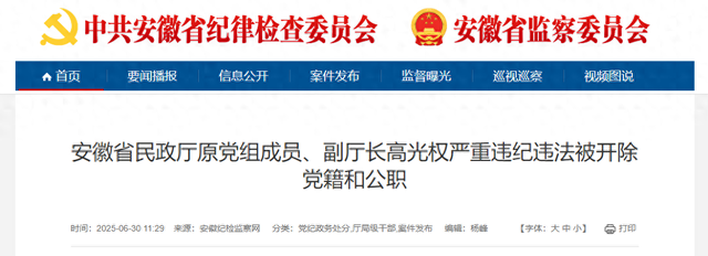 日前,经中共安徽省委批准,安徽省纪委监委对省民政厅原党组成员、副厅长高光权严重违纪违法问题进行了立案审查调查。