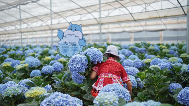 绣球盒马村工作花农进行采花