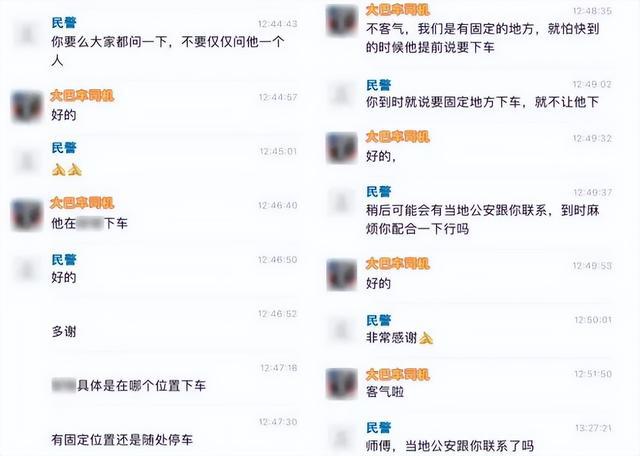 民警廖宇雷还悄悄与大巴上轮休的司机联系:你们车上有嫌疑人。