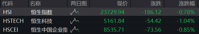 港股:截止发稿,恒指跌0.78%,恒科指跌1.04%。![]()
