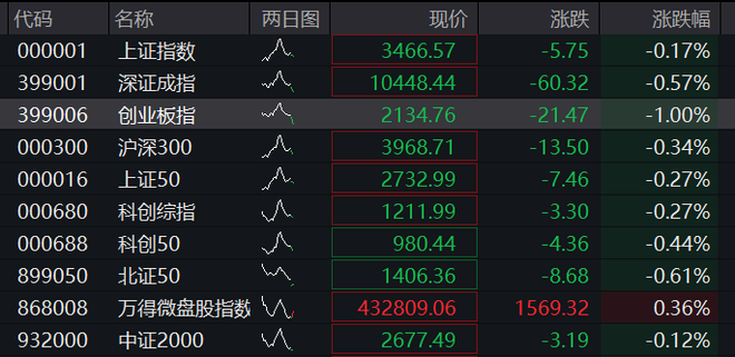 A股:截止发稿,沪指跌0.17%,深成指跌0.57%,创业板指跌1.00%。![]()
