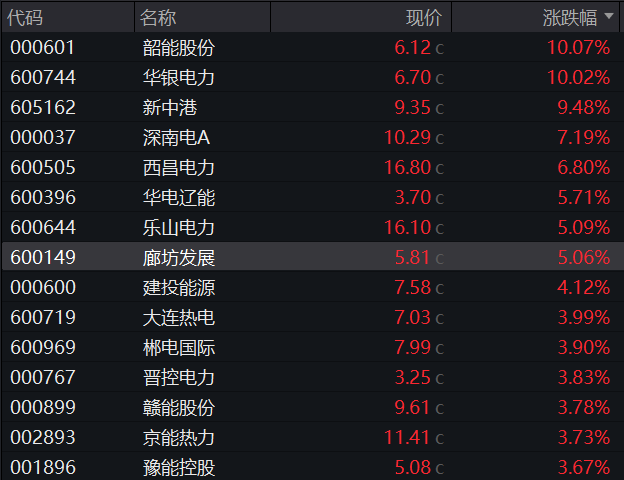 电力股延续强势,华银电力3连板,韶能股份2连板,深南电A、西昌电力、华电辽能、乐山电力等多股高开。