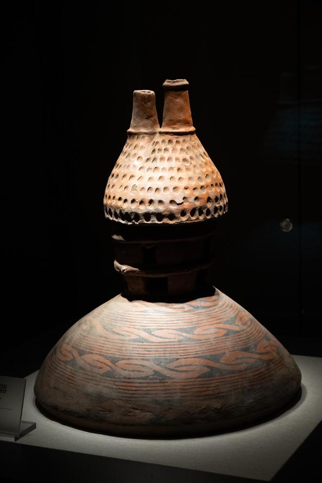 除了玉器之外,陶器也是红山文化的重要组成,它的纹饰简洁凝练,比较有代表性的有之字纹、勾云纹等。由此我们可以窥见当时红山先民的审美情趣与技术水平。