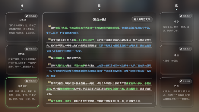在发布会上,豆神教育通过超能训练场-【超练作文:能写出来】中一段以《最后一投》为主题的作文教学实操演示,展现了超能训练场“解、带、细、实”四大核心能力。