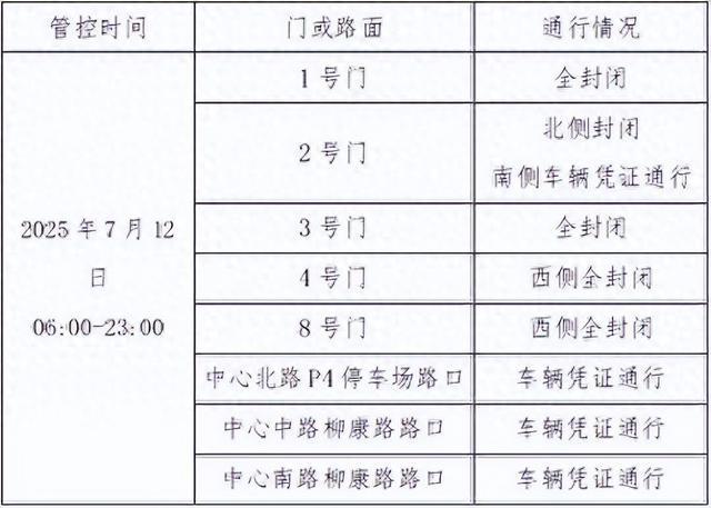 1.道路管控:7月12日当天,将对西柳体育场周边道路实施临时交通管控(具体区域详见附图)。