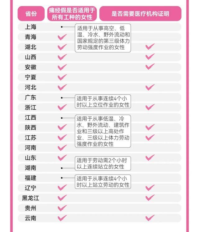 据最新统计,目前全国已有包括北京、上海、广东、浙江、云南等约20个省市,在地方性规定中明确了女性劳动者的这一权益,休息时间普遍在1~2天,最多的是3天。