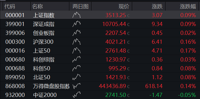 上证指数高开0.09%,创业板指涨0.02%。稀土概念股反复活跃,券商、黄金板块涨幅靠前,机器人、数据安全题材活跃;中船系、西部基建、稳定币、多元金融概念股跌幅靠前。