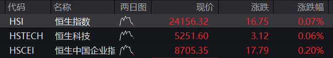 港股:截止发稿,恒指涨0.07%,恒科指涨0.06%。![]()