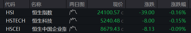 恒指低开0.16%,恒生科技指数跌0.15%。蔚来涨4.6%,华虹半导体涨近1%;京东健康、百度、哔哩哔哩、京东集团等跌超1%,阿里巴巴跌0.7%,美团跌0.2%。
