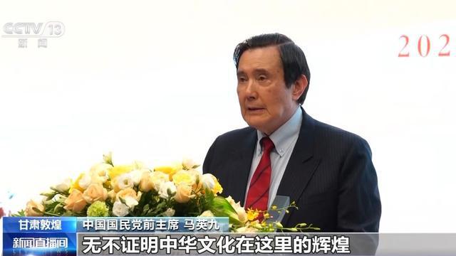 中国国民党前主席 马英九:从莫高窟壁画中的宗教融合及艺术成就,到历史留下来的文字、器物、文化,无不证明中华文化在这里的辉煌。对于中华文化的重视与传承,是两岸共同的责任。这些年来,两岸在宗教、音乐、文化、哲学、历史研究等领域的交流日益频繁,互相启发,共同成长,展现出文化的力量。
