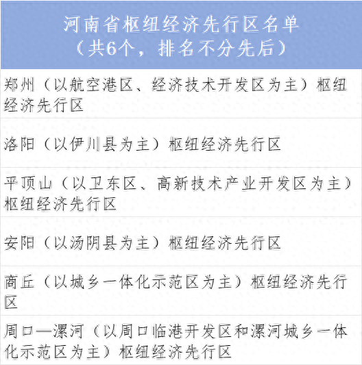 7月17日,河南省发展和改革委员会公示河南省枢纽经济先行区名单,经地市推荐、材料审核、专家评议,初步确定6个枢纽经济先行区进行重点培育。