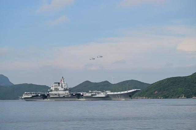 7月3日,中国海军山东舰航母编队抵达香港。这是山东舰行进在香港水域。新华社记者 朱炜 摄