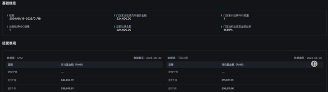 该系统对上述云贵餐厅ARM(系统抓取)、门店上报月均营业额均有统计,同时披露项目撮合日期、终止日期与累计收款。