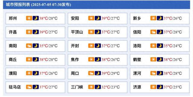 7月5日6时5分至7月5日10时35分,河南高温预警信号已达106条。其中,