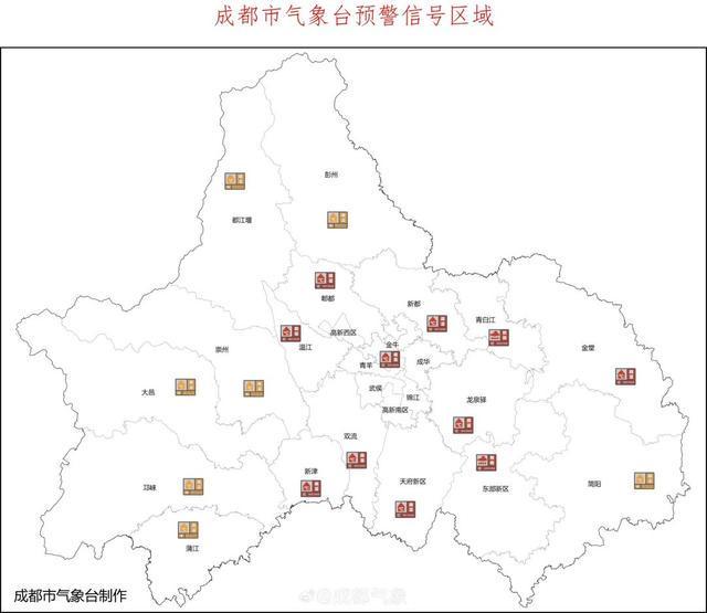 目前我市彭州、都江堰、崇州、大邑、邛崃、蒲江和简阳发布高温橙色预警信号,其余区(市)县发布高温红色预警信号。
