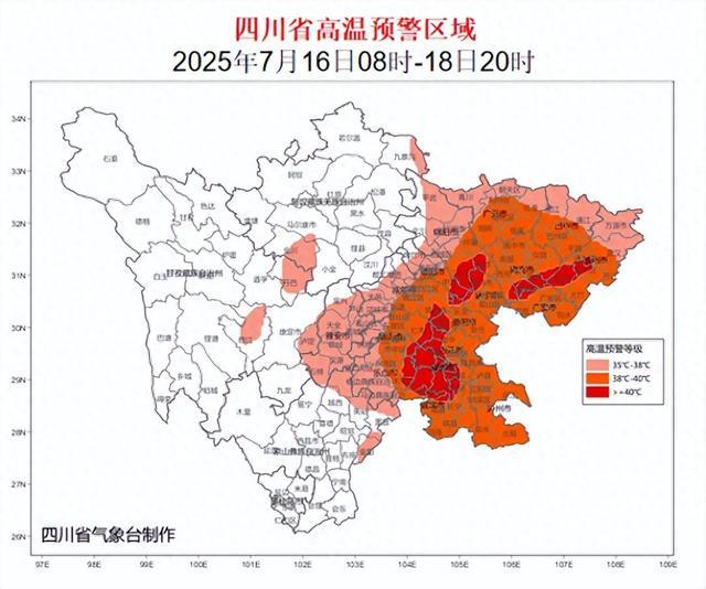 预计成都市武侯区、锦江区、青羊区、成华区、金牛区、高新南区、高新西区和青白江区的所有镇(街道)今日最高气温将升至37℃以上,东部新区的大部分镇(街道)今日最高气温将升至40℃以上,高温时段主要出现在12-19时。